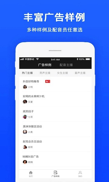 4、在广告样例中你可以看到别人配的语音。