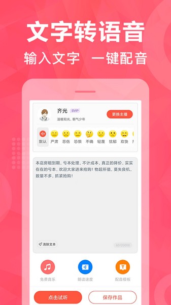 3、提供多种声音类型和风格,可根据自己的需要选择不同的声音和音调。