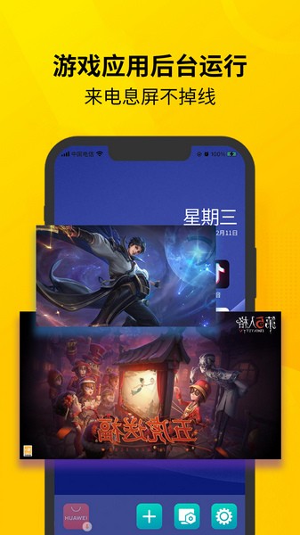 3、游戏应用后台运行,来电息屏不掉线。