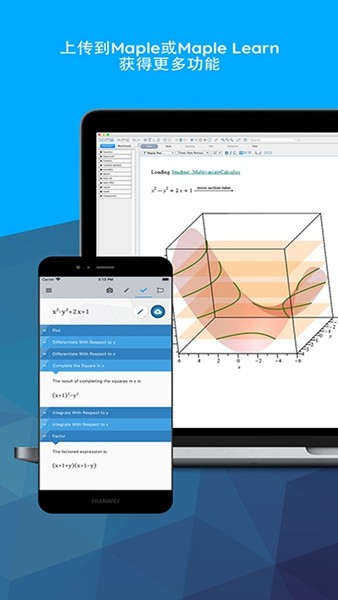 2、进行各种数学运算:无论通过何种方式输入数学问题,您都能求出导数和积分、解系数多项式、矩阵求逆、解方程组、解常微分方程等等。这款应用有世界领先的Maple数学引擎强大的功能作为后盾,可以完成海量的数学运算