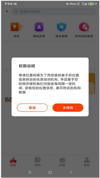 4、用户可直接使用app进行位置定位,方便查看周边的培训机构;