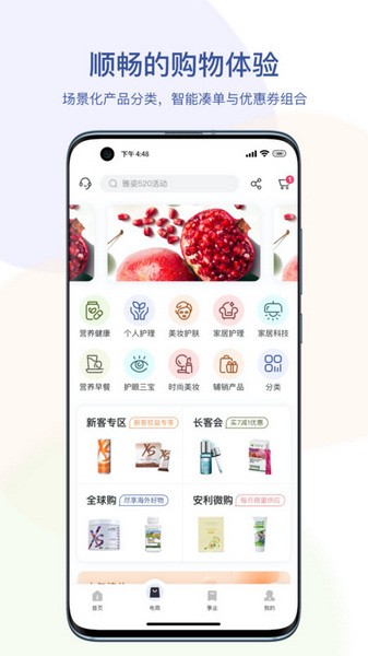 6、应用中心:提供安利所有的移动应用,包括:安利播库、安利新姿、植物营养素、雅姿美肤HD、安利云学堂、雅姿恒时凝颜HD、早餐加一勺、安利皇后厨房、安利益之源等。