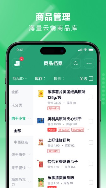 百万云库商品资料,资料录入更便捷,还有大小包装自由转换、智能补货功能,让商品管理更轻松;