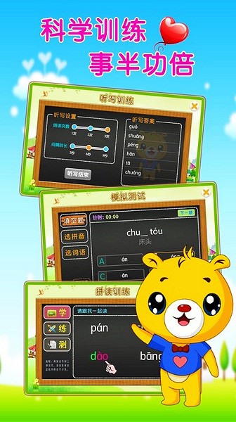 我觉得这个应用真的很适合小朋友学拼音,特别是它的发音顺口溜和实时录音功能,能让孩子大胆练习发音。而且每个汉字都有拼音标注,边学拼音边认字,学习效果特别好。家长也能通过测验了解孩子的进步情况,挺省心的。总之,巴比学拼音不仅内容全面,还能激发孩子的学习兴趣,是个不错的工具!