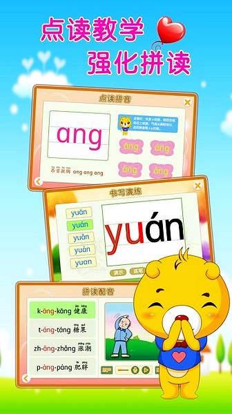 6、9款经典测验游戏,提升宝贝的拼音学习兴趣,从而达到快速学习、培养宝贝独立阅读的目的。