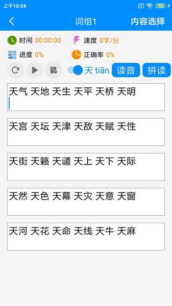 拼音打字练习app是一款非常方便且实用的打字练习软件,主要是为刚接触打字的用户人群们打造的,尤其是儿童学生等,软件内拥有非常多实用的功能,大家可以在里面找到多种类型的练习内容,不仅有大量的文章练习,还包含了小学一到六年级的课文,让大家一边打字一边还能学习到更多的语文知识。用户们可以通过软件清楚的了解到自己的打字速度和打字情况等,有需要的快来下载吧!