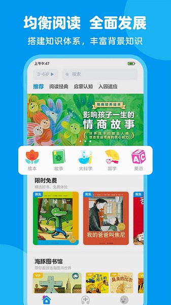 6、丰富的会员权益:图书畅读、课程畅学、会员折扣、专属券包、生日福利、积分商城、会员专区、线下权益等,满足孩子全面、健康、快乐成长。