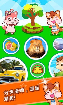 1、软件专为幼儿设计,幼儿听音看图识字,认识常见的动物、水果、食物、工具等。每张图片下面都有中英文及其发音。帮助您的孩子提高英语及汉字学习的乐趣。