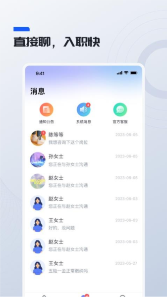 支持在线沟通,求职者与招聘者可以直接在软件上进行在线沟通。