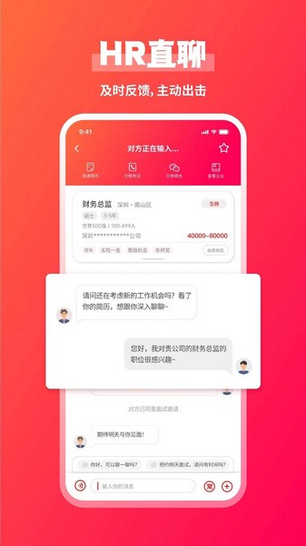 3, 职聊: 求职者与招聘者直接对话,便于双方更快速地找到合适的工作和人才,促进沟通与交流.