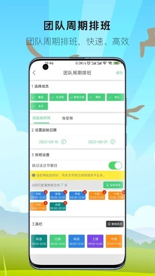 2、新增一日内多班次排班功能,排班更便