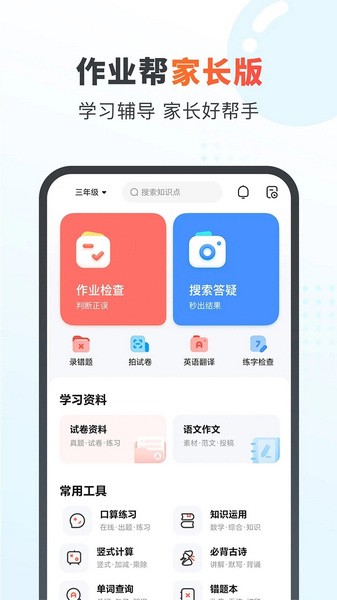 作业帮家长版APP是一款超级实用的数学作业批改工具,功能特别强大。它不仅能自动检查孩子的数学作业,还能拍照搜题,解决各种难题。口算练习、错题本这些功能也超方便,关键是能解放家长们的负担,不用再为作业发愁了。