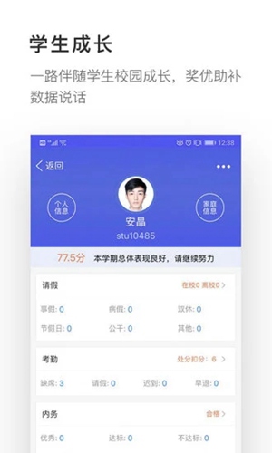 3、围绕考勤签到、请销假和日常操行为业务核心;