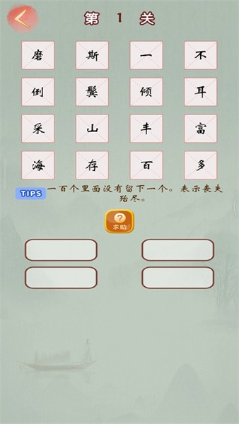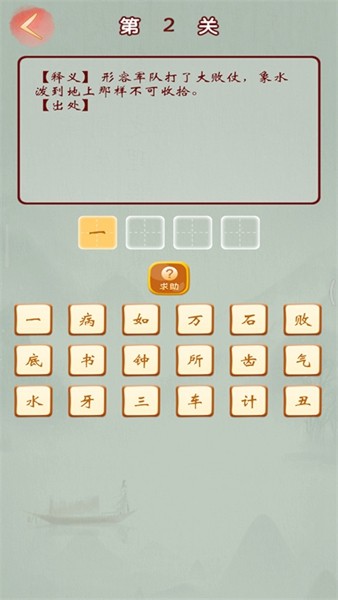 2、点击成语接龙,选择第一个字,根据释义来选择正确的成语即可。