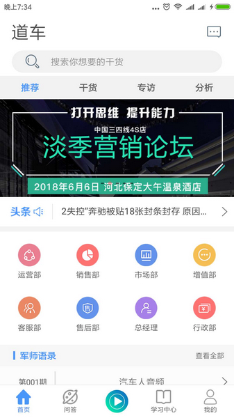 道车APP是一款汽车行业学习互动交流平台,行业覆盖:4S店、汽车超市、二手车、新能源从业人员,产品致力于中国汽车行业从业人员能力提升,帮助中国500万汽车人打开思维提升能力。