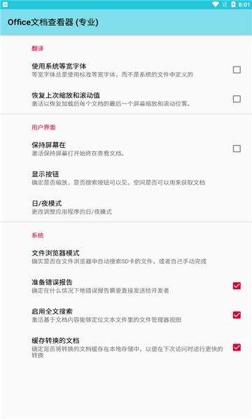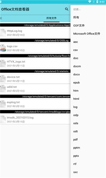 Office文档查看器是一款非常方便的文档浏览软件,现在我们经常会用手机来传输办公文件,而有了这款APP之后,我们就可有直接在手机上查看各类office办公文档了。软件的文件管理界面是非常直观的,而且提供了丰富的过滤器让用户可以快速筛选出需要的文件类型,此外还可以对显示样式进行修改。而该专业版是经过破解的,可以免费使用所有的高级功能。