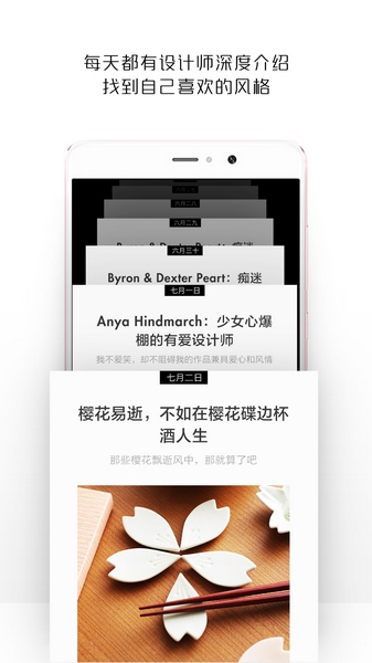 最美有物是一款专注发布全球最新设计好物的智能产品发现互动平台,专为各类原创设计师、设计专业学生以及爱好时尚与设计的人群量身打造。不仅拥有像一页页书签一样层叠的特色内容介绍,让人一目了然,过目不忘,并且每天还会给用户推荐6款来自全球各地的原创设计产品,遍及纽约、巴黎、纽约、伦敦、东京等设计之都。而且各种精美的设计品琳琅满目,在每个产品的右下角,都有一个哭脸和一个笑脸,根据个人喜好的不同,可以为每一件商品给出自己的评价,喜欢或者不喜欢,就这么简单。更有意思的是,最美有物不光为大家推荐好玩的产品,更重要的是把它们背后的设计师推到台前来,让用户认识到底是谁创造出了这些独具匠心的设计品,而设计师+作品+画报的形式,则让用户可以多方位了解这些设计师的点点滴滴。