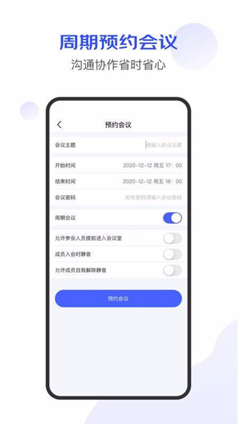 3、适用场景:适用于固定人员的周例会、部门例会等,再也不用每次预定会议,节省时间;
