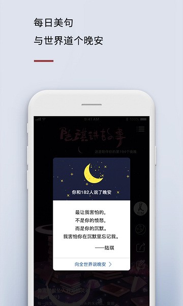 软件还有很多特色功能,比如每天自动推送睡前故事,音频质量也很不错,听起来很舒服。背景画面设计得很漂亮,感觉像做梦一样。特别是海量的经典名著片段和美句卡片,每天都能看到新的内容,简直像在看一本会动的书一样有意思。