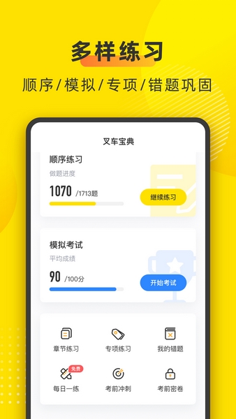 2、收录了各个城市的叉车考试题库,满足用户的学习需求;