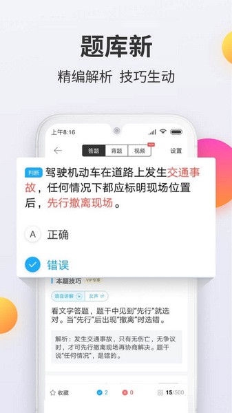 2、新题库:紧跟公安部更新驾考题库,上亿用户众筹题库数据,新驾照题库保障;