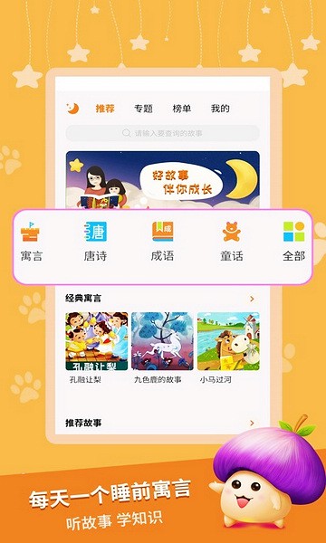 让寓言故事精选APP成为孩子身边的故事大王,爸爸妈妈们,不再为找不到合适的故事而烦恼。让我们一起成为孩子身边的故事讲述者,用每一个高品质的故事,点亮孩子的童年时光。