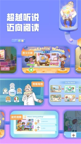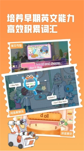 趣味课程设计:结合动画、游戏化学习,故事、歌曲、漫画等,让英语学习不再枯燥,寓教于乐,提高学习兴趣,让孩子主动学。