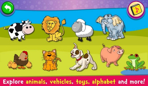 3.声音模式:此模式可让您选择具有代表性图像和声音的各种对象集合,孩子们将熟悉他们的声音并学会识别它们。孩子将能够探索物体的不同声音,并学习英语,西班牙语和葡萄牙语中颜色,数字和字母的发音。