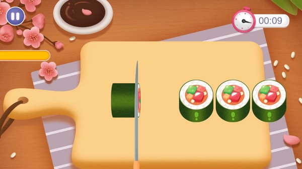 宝宝寿司店是一款卡通风格的趣味益智儿童类游戏应用。在这款小游戏中,玩家将去学习如何制作日本寿司,有多种不同类型的寿司可以学习制作,通过简单的教程来引导玩家去处理食材并加工。通过寓教于乐的方式来让小朋友去认识新的事物,加深对事物的理解,同时也可以锻炼小朋友的动手能力,学会去独立克服困难。