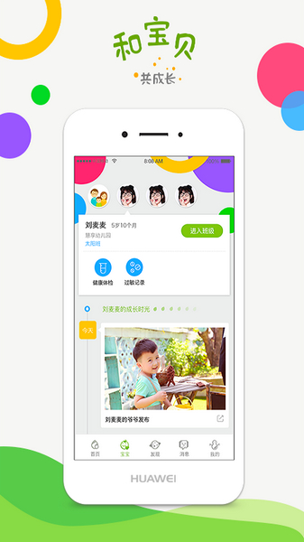 智能实验室:接入智能手表、安全晨检等硬件,方便教师、家长实时了解宝宝情况。