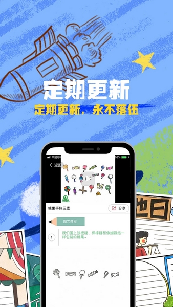这款画画软件APP是一款非常适合教孩子画画的工具,界面简洁易懂,教程详细,采用简笔画风格,特别适合家长和小朋友一起学习。软件里有超多素材,包括贴纸、胶带、背景等,分类非常细致,还能根据时下热点和传统节日更新内容,家长朋友们会很感兴趣。