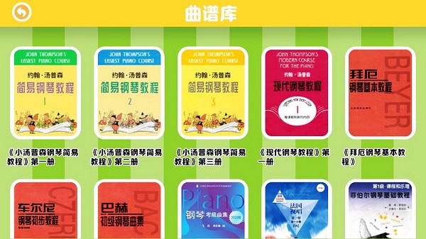 2、曲谱库里有简易钢琴教程、现代钢琴教程、钢琴基本教程、钢琴考级曲目等,选择需要学习的下载;