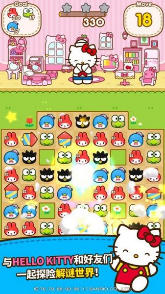 享受消除障碍方块带来的乐趣并探险凯蒂猫和好友们的世界吧!