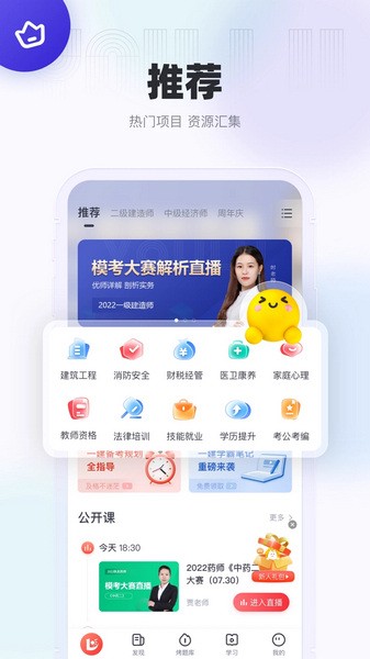 软件的功能非常全面,包括海量真题练习、直播教学、离线观看课程以及在线互动等。特别是它的“掌上考试通知”功能,能及时提醒用户重要考试节点,避免错过关键环节。此外,优路教育还提供了丰富的题库和模拟考试,让用户可以在学习中随时检验自己的掌握程度。