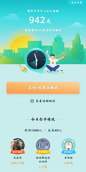 2、在miui活动每天早起打卡,加入早起挑战领取米金。