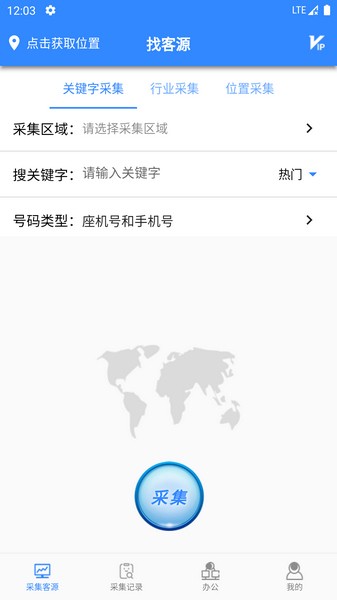 1、在软件中用户可以输入关键字、采集区域、号码类型搜索采集客源信息;