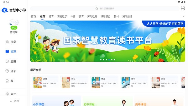 小学课程、初中课程、高中课程、电子教材