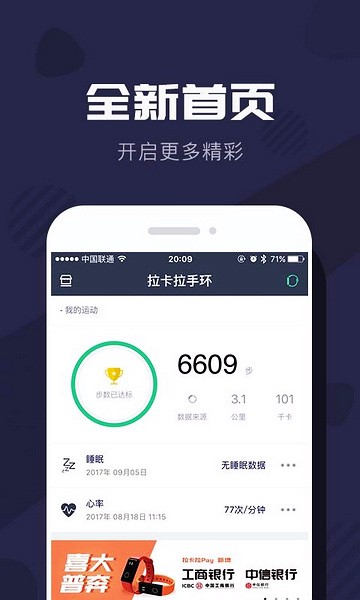 拉卡拉穿戴app是一个非常实用的智能设备管理软件,可以和手环、眼镜、耳机等设备连接,查看睡眠、心率等健康数据,还能绑定交通卡和银行卡,方便支付。它的特色功能包括空中发卡充值、运动健康监测以及运动圈社交互动。用户可以通过App随时了解自己的运动步数、消耗的卡路里和体重变化,还可以和其他人一起参与每日运动排名,增加乐趣。