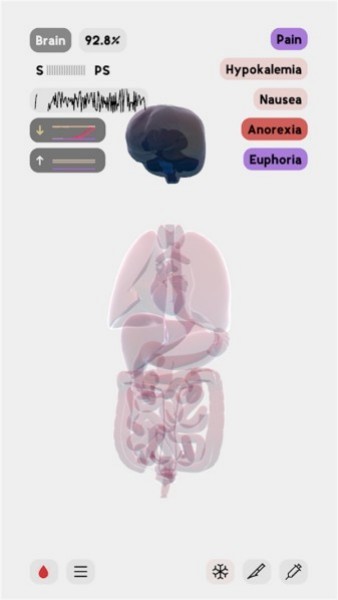 另外,游戏的语言一开始是英文,但可以通过简单的设置切换到简体中文。对于新手来说,可能需要花点时间适应操作流程,比如拖动屏幕查看器官或旋转模型。总的来说,这是一款适合所有人的医学探索游戏,既有趣又有教育意义!