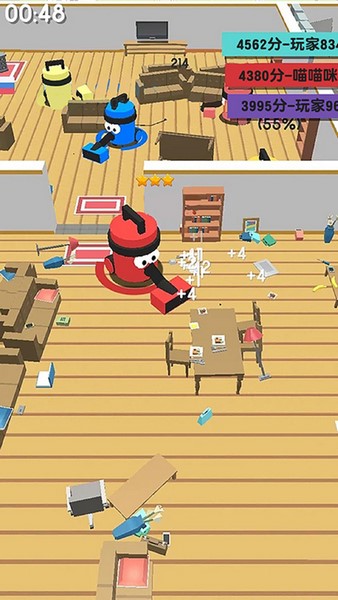 游戏支持多位玩家同时在线竞技,玩家可以与其他玩家进行实时对战,争夺体积最大的吸尘器称号。