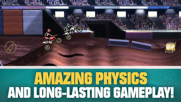 疯狂摩托车技2是一款颇有挑战的越野摩托竞速游戏。在游戏中玩家可以驾驶摩托车在赛道上做出各种高难度的特技动作,尝试越过精心设计的障碍和陷阱,以最快的速度、最短的时间来到终点。玩家每次完成比赛都可以获得金币和道具的奖励,它们可用于解锁新的摩托车或者骑手服装,还有多种车辆装扮可以兑换。