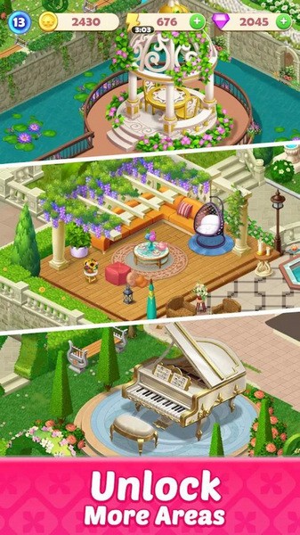 1.享受这款色彩缤纷的合并游戏,您可以在其中设计您的梦想家园!