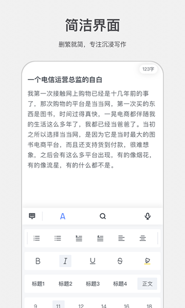 1. 简洁界面:讯飞写作助手的界面设计简洁明了,便于用户集中精力进行写作。