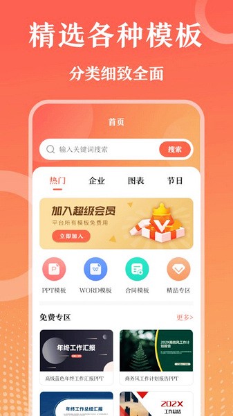 第一PPT网是一款非常好用的ppt模板应用,同时它也可以叫做第一PPT模板,平台内为用户们提供了非常丰富的ppt制作模板以及WORD模板,并且各种各样的分类都有,包括商务、简约、卡通等不同的风格,满足大家不同的使用需求,并且内置了强大的搜索系统,大家只需要将关键字输入就可以看到许多模板,直接下载就可以使用了。