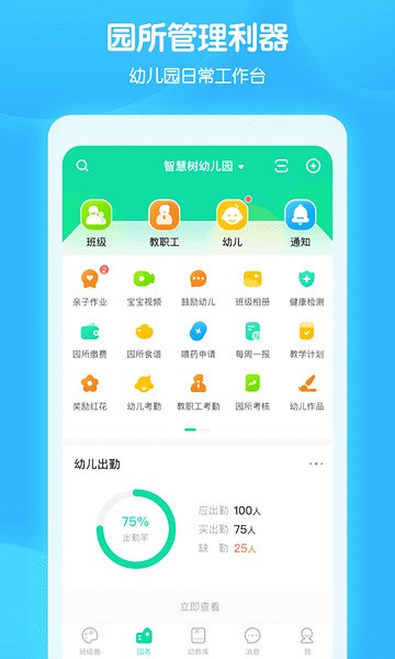 智慧树园丁APP是一款主打幼儿园儿童管理的软件,其功能和特色令人瞩目。界面简洁清爽,使得用户能够轻松上手,并在班级圈中发布各类精彩瞬间,促进班级互动热度,帮助园长实时掌握各项园务,囊括考勤、档案、各班计划表等,且能随时发布通知,管理更高效!而老师们可以通过软件随时随地与家长进行沟通,发布消息,避免不实言论传播!且支持短信通知功能,短信、电话双重保障信息送达!老师们还能拍摄孩子们的上课时光及各种萌态,并在班级圈中发布,让孩子家长可以随时浏览查看,让家长们更满意!此外,智慧树园丁版不仅仅是一款简单的打卡统计工具,更是一站式手机官网。通过云端教职工通讯录和财务收退费管理,园所管理变得更加高效。考勤功能实时查看学生报道情况,老师们可以随时与家长进行沟通,实现了移动信息化时代的便捷交流。