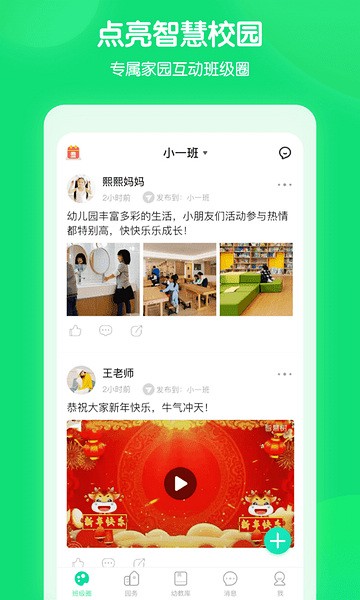 班级圈功能可接收各班发布的精彩图文资讯任意点击查看;