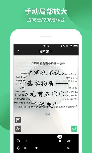 2,图片放大:提供多倍放大,支持镜面的亮度调节,让放大镜变得更神奇。