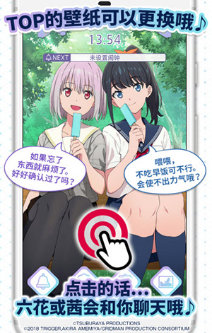 5.除闹钟外,还可以设置TOP壁纸,如果点击壁纸中的六花和茜茜,还会和你聊天哦。