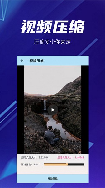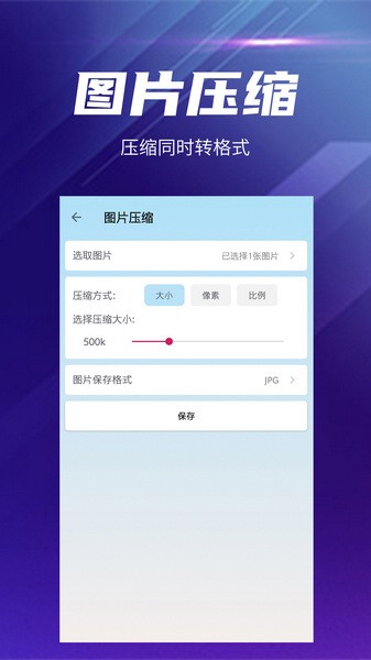 快压缩是一款方便好用的手机视频图像压缩工具。这款软件能够帮助用户将本地的视频和图像文件进行压缩,将原本大体积的文件压缩成小体积保存,能够腾出更多的空间用于存储。此外,软件还可以对文件的格式进行转换,在多种主流格式之间进行随意切换,还可以对视频和图像进行编辑调整或者合并处理。所有的功能都支持批量处理。