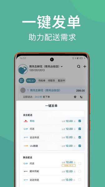 提供骑手+专车配送服务,为自配送商户提供更快速配送解决方案,提高复购率与好评率。